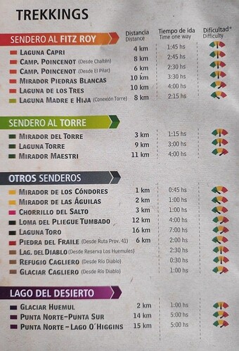 Voici l’ensemble des randonnées faisables dans la Parque De Los Glaciares.