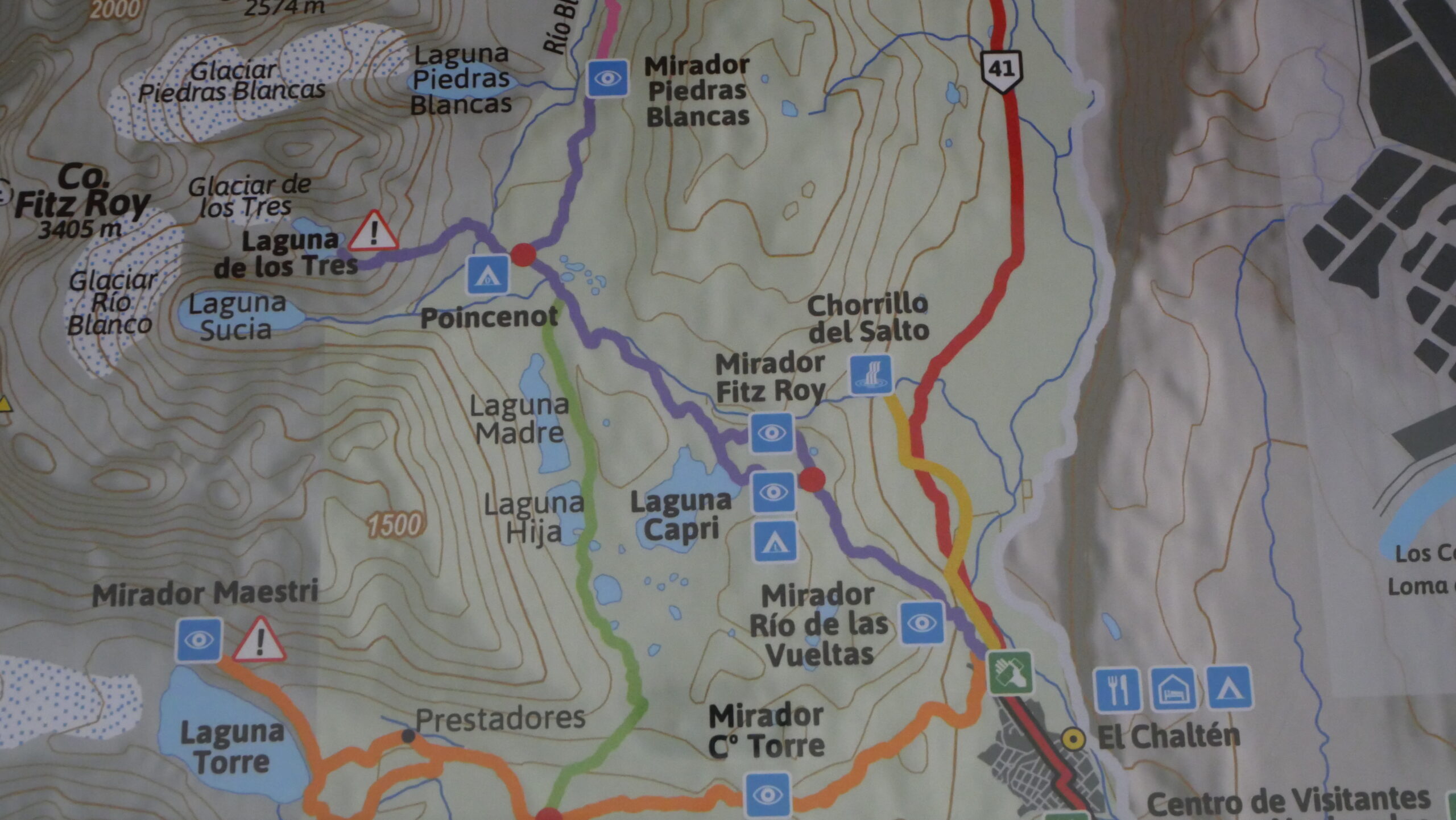 750 mètres de dénivelé quand même, plus de 20 km. Il faut ajouter la marche autour de la Laguna et potentiellement la petite montée pour voir la Laguna Sucia.