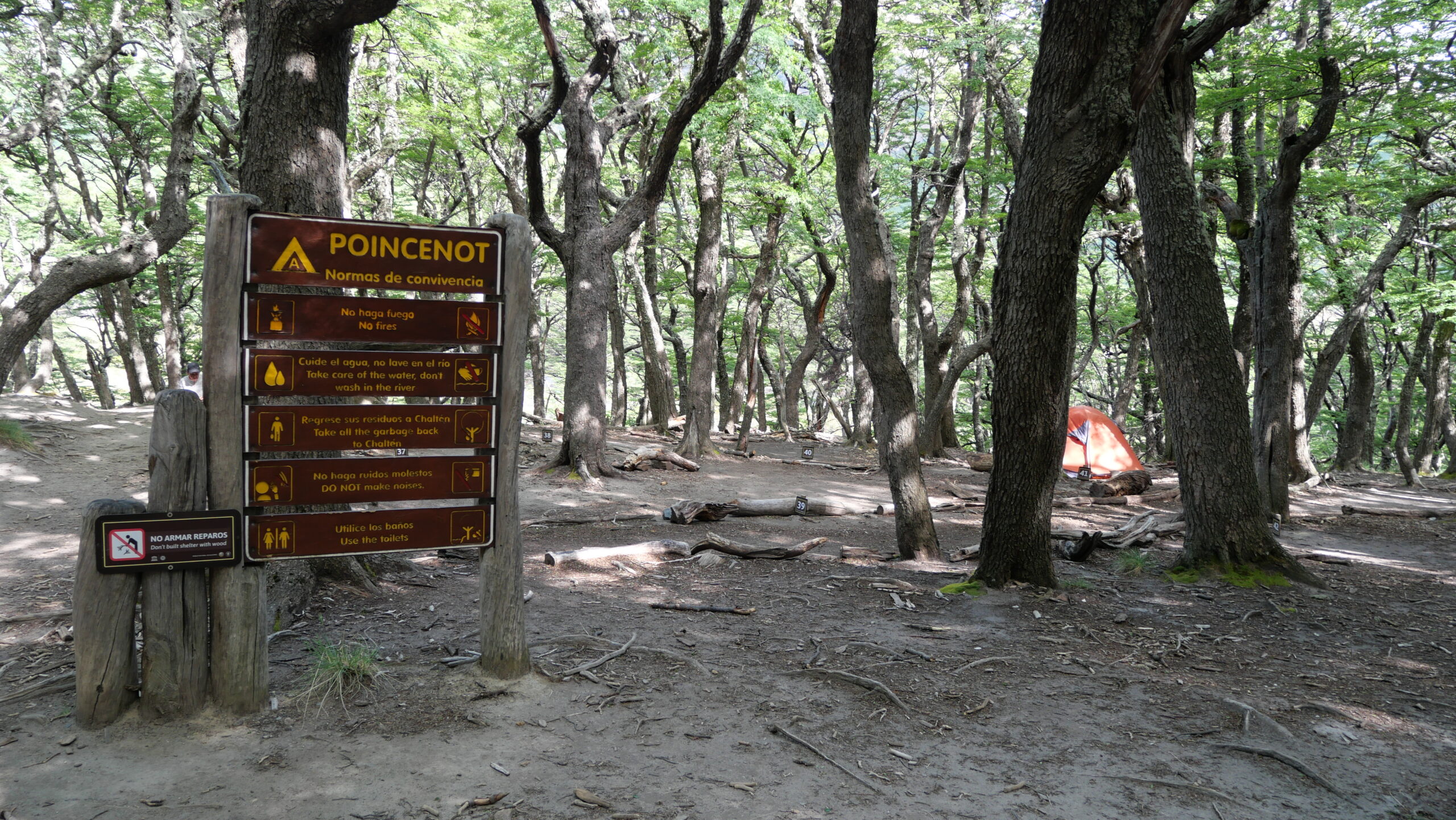 J’arrive finalement au point de campement Poincenot (du nom du 1er Français membre de l’expédition à avoir escaladé le Fitz Roy), campement possible gratuit, faut quand même payer les droits d’entrée du parc bien sur préalablement.
