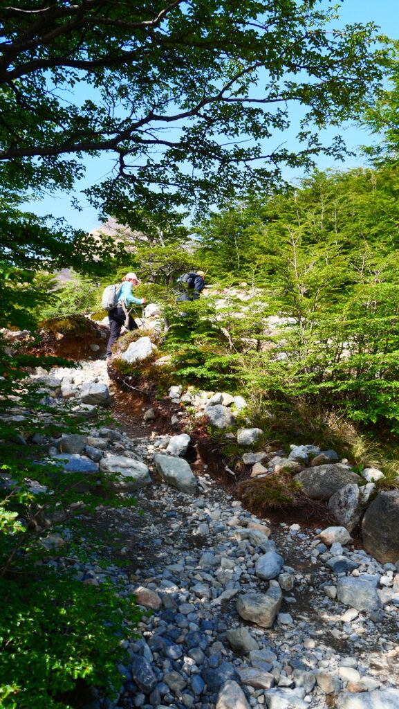 La dernière ligne droite est la plus difficile, une montée d’environ 1 heure. Il y a souvent de l’eau qui s’écoule sur les pierres en fonction de la saison, prudence car ça glisse.