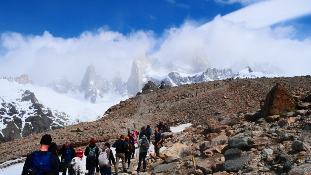 Dès que vous avez une vue sur le Fitz Roy pendant la randonnée, il faut en profiter, n’oubliez pas que le temps se gâte vite en Patagonie !
