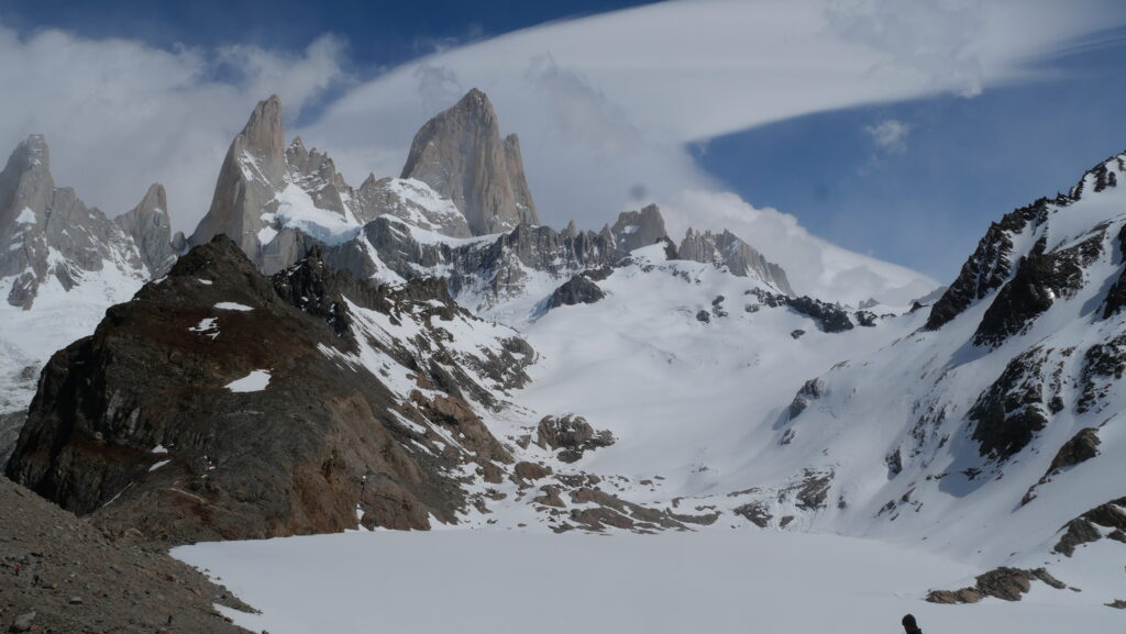 Un lac gelé se découvre au pied du Fitz Roy, la laguna de los Tres.