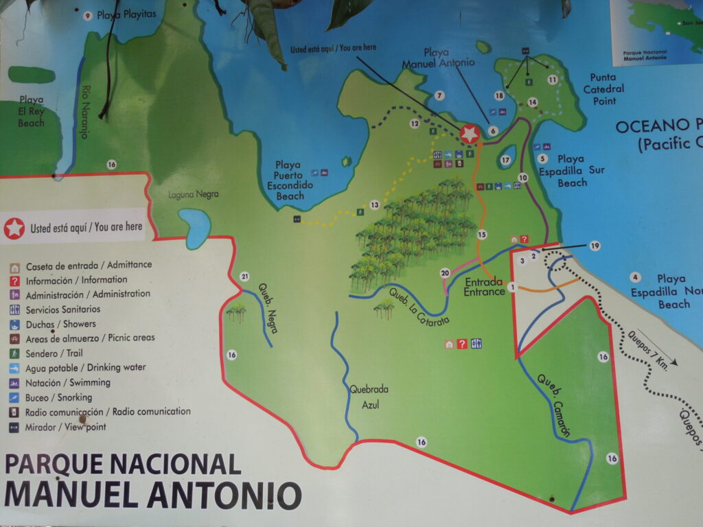 1) Quepos / Manuel Antonio, la Réserve de Manuel Antonio permet de voir beaucoup d’animaux, accès aisé même en famille, très belles plages, une bonne ambiance le soir à Quepos et une météo moins capricieuse que la côte Caraïbe ;