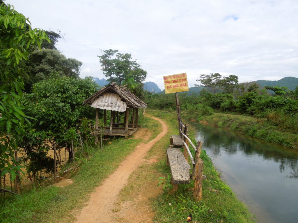 En effet, une caractéristique de Vang Vieng c’est les falaises de calcaire qui se dressent en toile de fond, celles ci sont parcourues de galeries inexplorées, un vrai paradis pour spéléologues. Cependant, la spéléologie n’est pas vraiment une facette que j’ai travaillé jusqu’à présent, donc autant dire que se retrouver dans une grotte seul avec une petite lampe de poche était impressionnant, comme je le dis souvent, toute nouvelle expérience est bonne à prendre, mais c’est plutôt stressant.